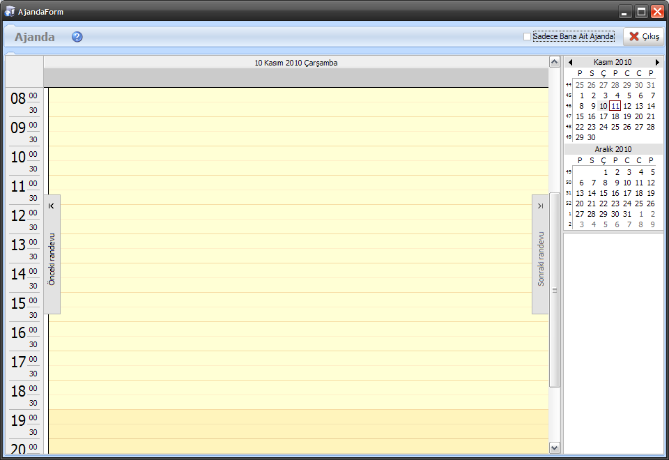 Ajanda modülü Servis, Fatura ve Çek&Senet Modülleri ile entegre çalışır.Serviste girmiş olduğunuz teslim tarihi ve Fatura-Çek-Senet girişi sırasında girmiş olduğunuz vade tarihlerini bu modülde otomatik listeler halinde alarak iş akışınızı kolaylaştırabilirsiniz. Yapılan bu otomatik hatırlatmaları sürükle bırak yöntemi ile istediğiniz saate taşıyarak günlük iş planlarınızı oluşturabilirsiniz. Sağ bölümdeki tarih alanında mouse ile tarama yaparak bu listeleri günlük ve haftalık şekillerde listeleyebilirsiniz.