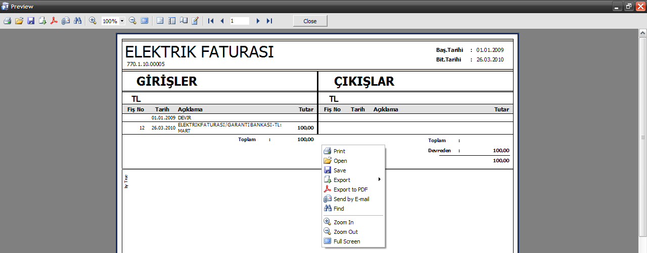 Aldığımız bu listeleri üzerinde sağ tıklayarak veya üstteki butonları kullanarak, istersek yazıcıdan çıktı alabilir, farklı formatlara (pdf,jpg gibi) dönüştürebilir, bilgisayar içerisinde her hangi bir yerde kayıtlarımızı saklayabilir, ve buna benzer bir çok işlemi buradan uygulayabiliriz.