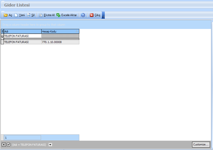 Sistem zaten kurulumdan sonra Gider Listelinde de göreceğiniz gibi olası bir çok gelir kodunu otomatik olarak açmış olacaktır.